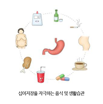 십이지장궤양은 위산분비가 많아 발생하게 되는데 반해 위암은 위산 분비가 적고 위축성 위염을 동반하는 질환입니다.