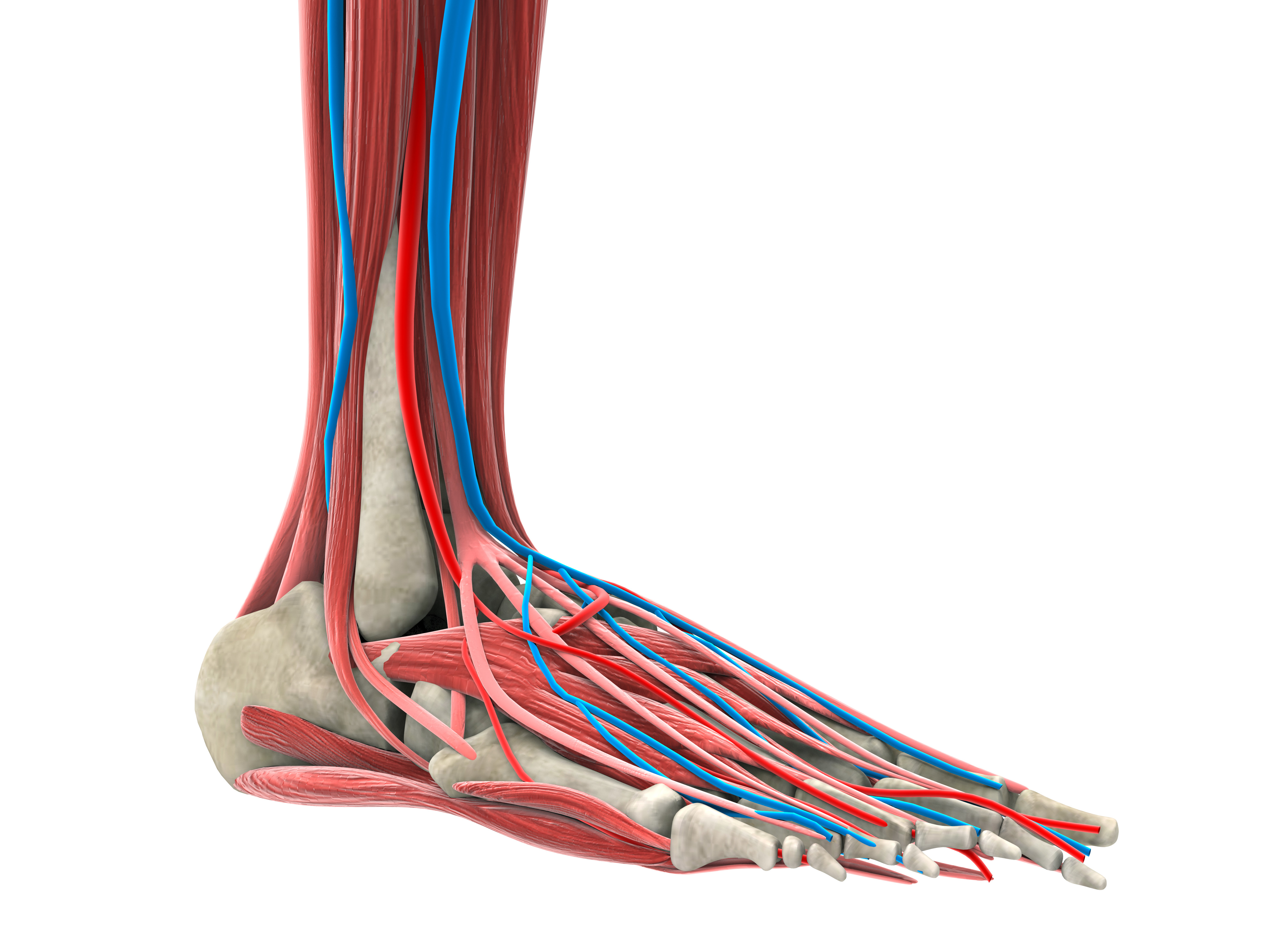 발은 뼈, 근육, 힘줄, 관절, 인대, 신경, 혈관들로 구성되어 있습니다.