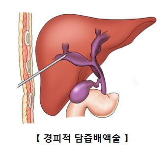 간문부 담관암은 대부분 심한 황달을 동반하여 간 기능 장애를 유발하므로 우선 담관 배액술을 통해 황달을 치료해야 합니다. 담관 배액술에는 내시경을 통해 시행하는 방법과 경피적으로 관을 삽입하는 방법이 있습니다.