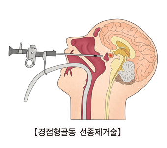 뇌하수체 종양을 치료하는 대표적인 방법에는 수술적 치료, 방사선 치료, 약물 치료가 있습니다. 이 중에서 수술적 치료는 코를 통해 뇌하수체 거대 선종을 제거하는 안전하고 성공률이 높은 수술입니다.