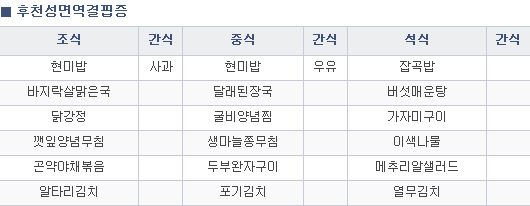 양질의 살코기, 생선, 두부, 계란 등의 단백질 식품, 신선한 채소류, 과일류, 달지 않은 식품