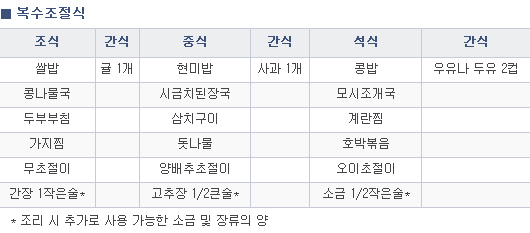 - 염분 첨가 되지 않은 자연식품에 매끼 염분 1g(소금 1/2찻술)만 추가 사용하여 먹습니다.