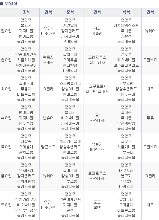 1. 미음 시도 후 흰죽, 영양죽으로 진행하며 하루 6회 이상 식사와 간식을 병행하여야 합니다.